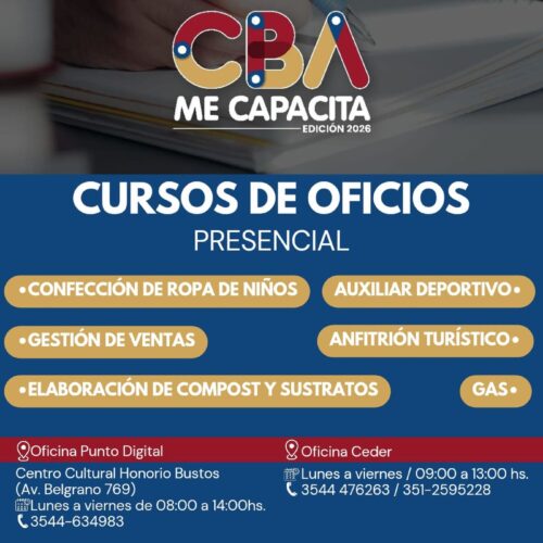 ÚLTIMOS DÍAS DE INSCRIPCIÓN. Sumate a los cursos gratuitos, presenciales y con certificación oficial. Se dictarán en el Centro Cultural brocheriano y edificio del Ceder. Recordá debes tener 16 años