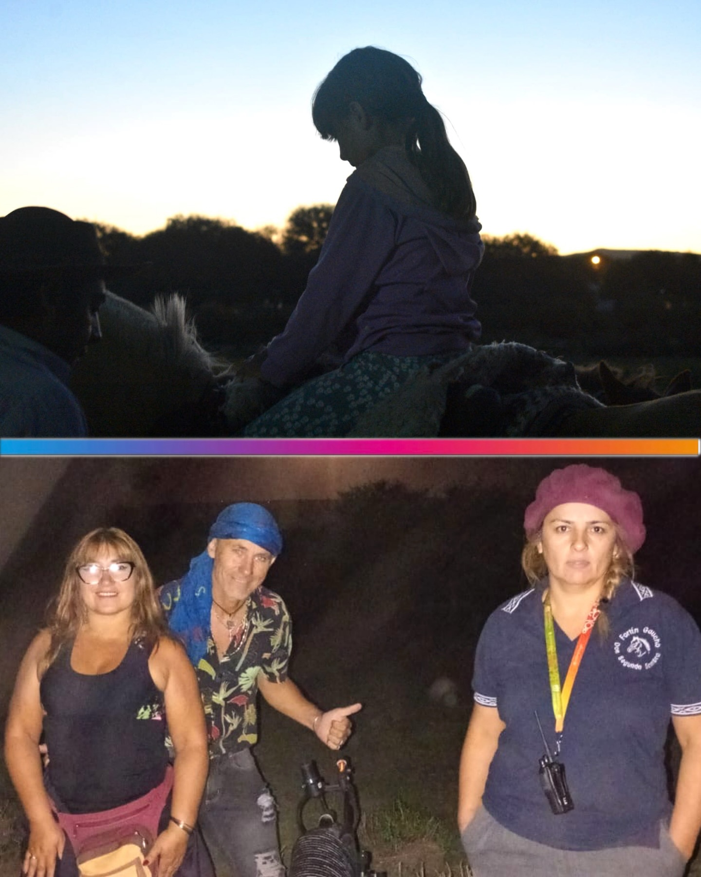 Entre relatos, mitología y explicaciones astronómicas, el universo dejó de ser lejano y se volvió cercano, presente. La aparición de la luna sobre el horizonte iluminó el paisaje serrano, transformando la noche y acompañándonos en el regreso de la cabalgata, guiados por su luz serena.