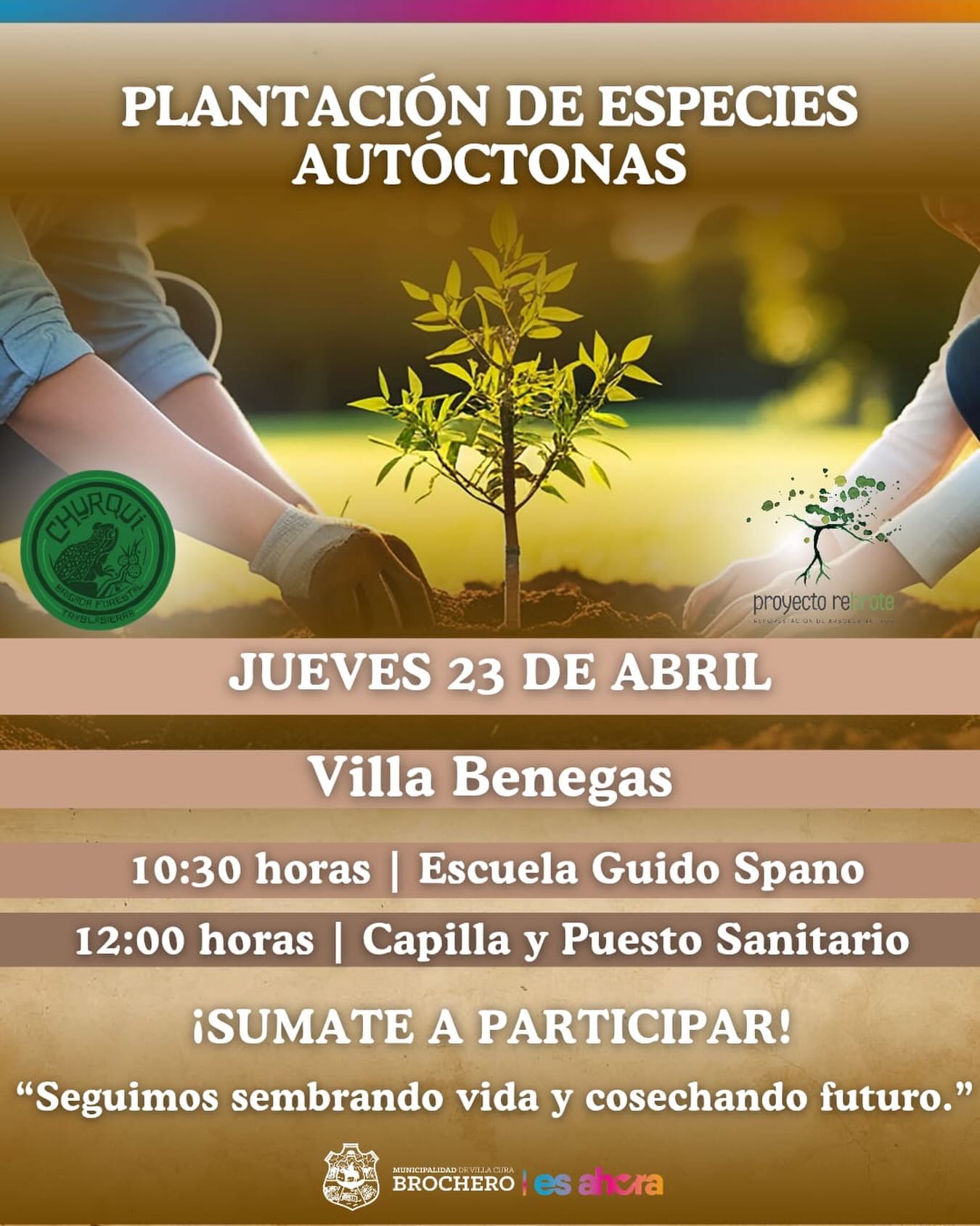 Invitamos a la comunidad y vecinos del paraje Villa Benegas, a participar de la plantación de especies autóctonas, el jueves 23 de abril durante la mañana.