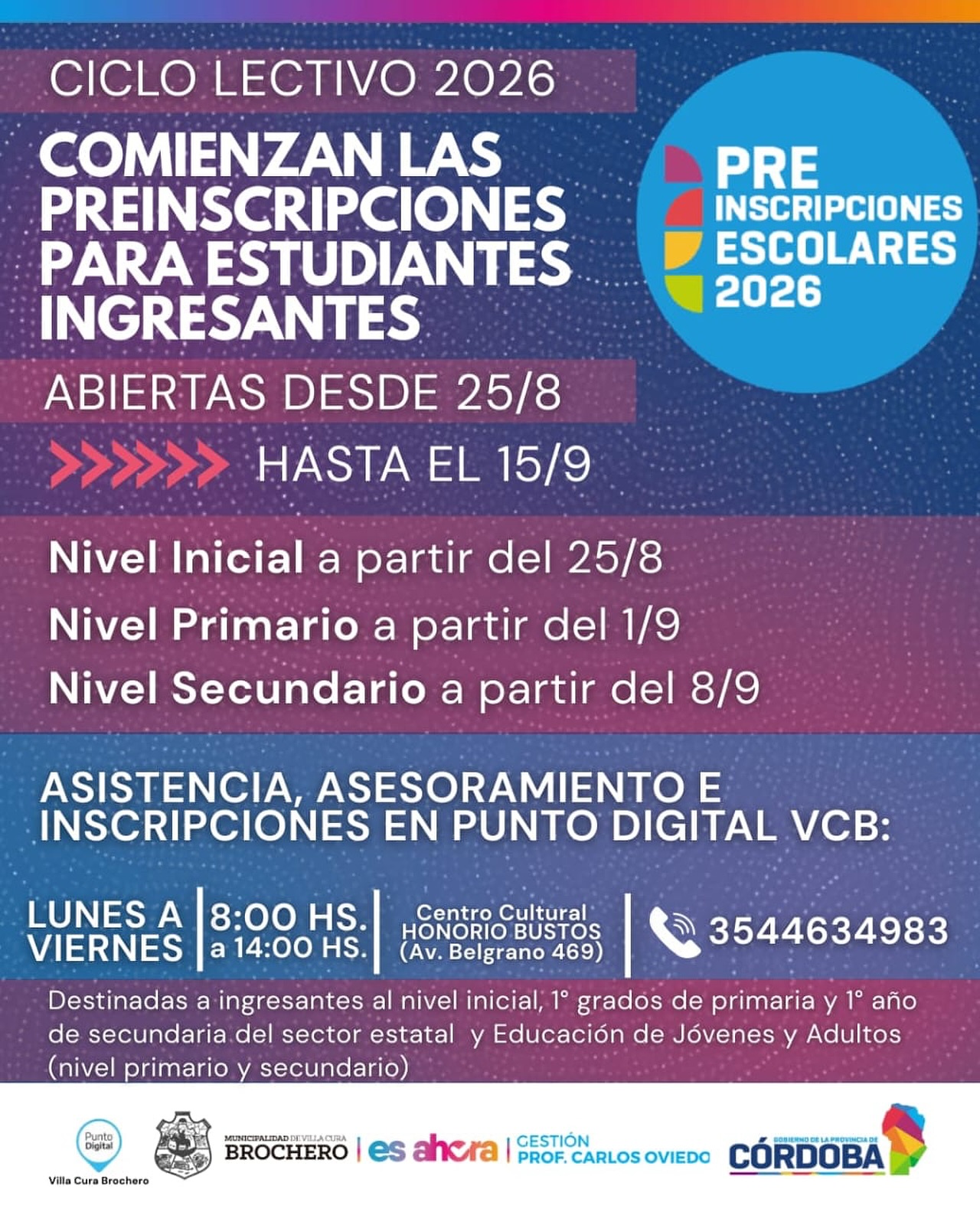 La Municipalidad de Villa Cura Brochero invita a los jóvenes de la localidad al Taller de Orientación Vocacional, que se dictará el viernes 17 de octubre, el SUM del Polideportivo Municipal.