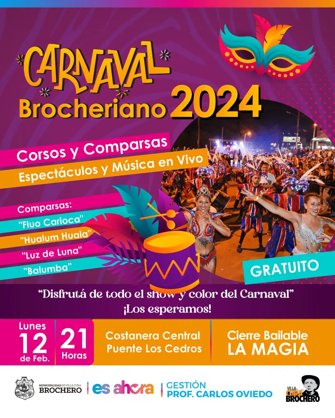 La Municipalidad de Villa Cura Brochero informa e invita a vecinos y visitantes a disfrutar del Carnaval en Villa Cura Brochero, el lunes 12 de Febrero, a las 21 horas, en Costanera Central- Puente Los Cedros. Estarán presentes las Comparsas "Fluo Carioca", "Hualum Huala", "Luz de Luna" y "Balumba", que pondrán todo el color y la fiesta a la noche. Habrá animación, espectáculos, sorpresas y cierre bailable con el grupo cuartetero La Magia. Entrada libre y gratuita. ¡Los esperamos para disfrutar juntos el Carnaval Brocheriano! En Verano ¡Conectá con Villa Cura...