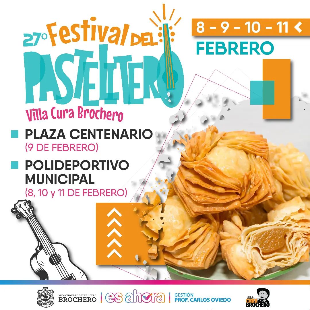 Invitamos a turistas y a vecinos a disfrutar del XXVII Festival del Pastelitero. Jueves 9 de Febrero en #PlazaCentenario. Miércoles 8, Viernes 10 y Sábado 11 de Febrero en el #PolideportivoMunicipal. 4° edición Mejor Pastelito Brocheriano. Homenajes a Familias Pasteliteras. Artistas locales y nacionales. Academias de bailes. Espectáculos y grandes shows. Comidas típicas. Rifa del Pastelitero (próximamente en puntos de venta). Entradas anticipadas (próximamente en puntos de venta) Info 3544544470/470022 En Verano ¡Disfrutá de la Noches Pasteliteras y viví Villa Cura Brochero! ...